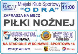 Mecze z niemieckim TSV 1910 i wzajemne wizyty drużyn są efektem współpracy pomiędzy klubami sportowymi i samorządami Ścinawy oraz Niemberga.