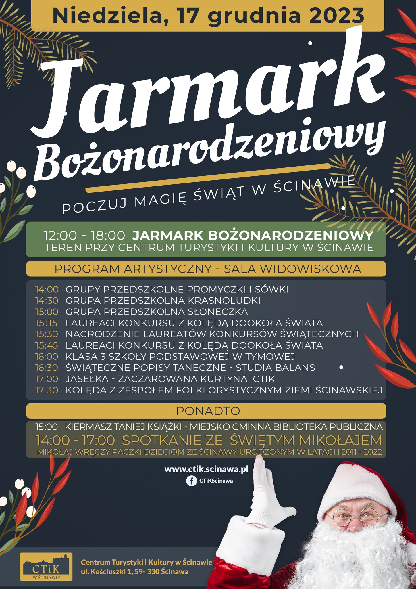 Zapraszamy na kolejną edycję imprezy, która wprowadza gminę Ścinawa w świąteczny nastrój. Tegoroczny Jarmark Bożonarodzeniowy, wzorem poprzednich, zaproponuje strawę dla ciała i ducha wszystkich odwiedzających. Wystawcy zaoferują pyszne potrawy, świąteczne ozdoby i być może zainspirują do tego, jak dodatkowo zadbać, by tegoroczne święta były jeszcze bardziej wyjątkowe. Z kolei lokalni artyści, przedszkolaki i uczniowie dostarczą masę wzruszeń i radości w swoich interpretacjach piosenek, pieśni i kolęd, a także jasełek. Ścinawski Jarmark Bożonarodzeniowy zostanie zorganizowany w niedzielę 17 grudnia i rozpocznie się punktualnie o godzinie 12:00. Zapraszamy!