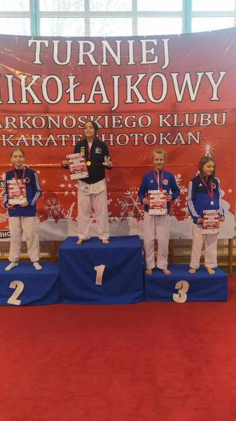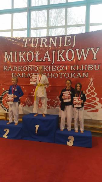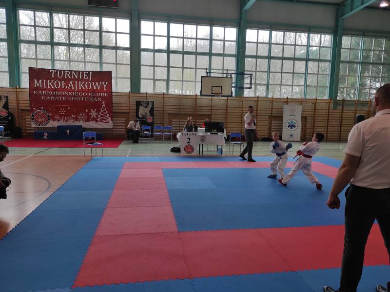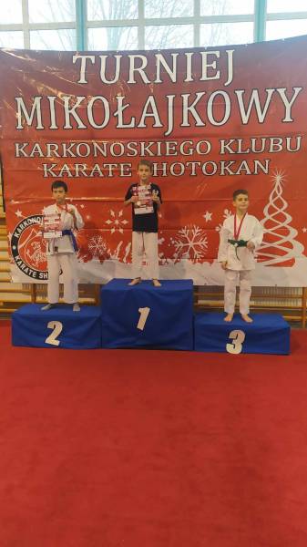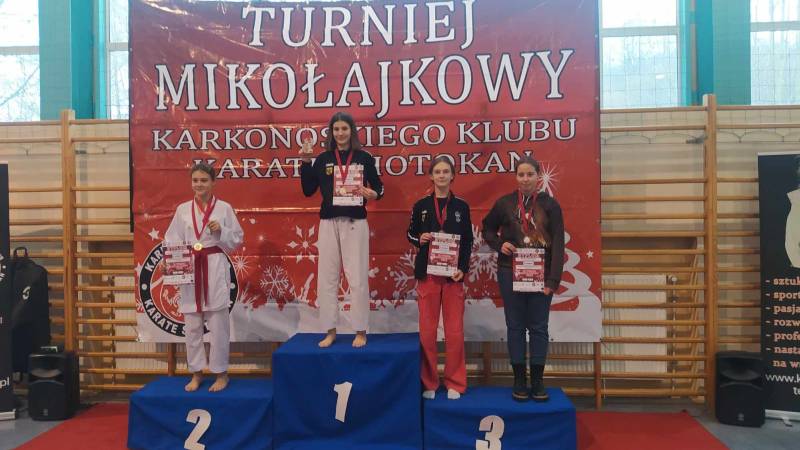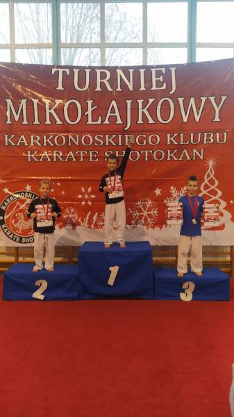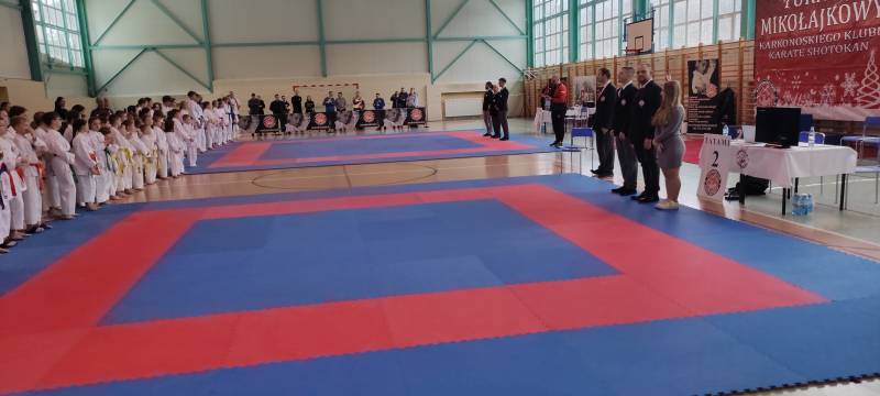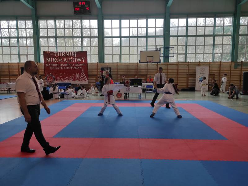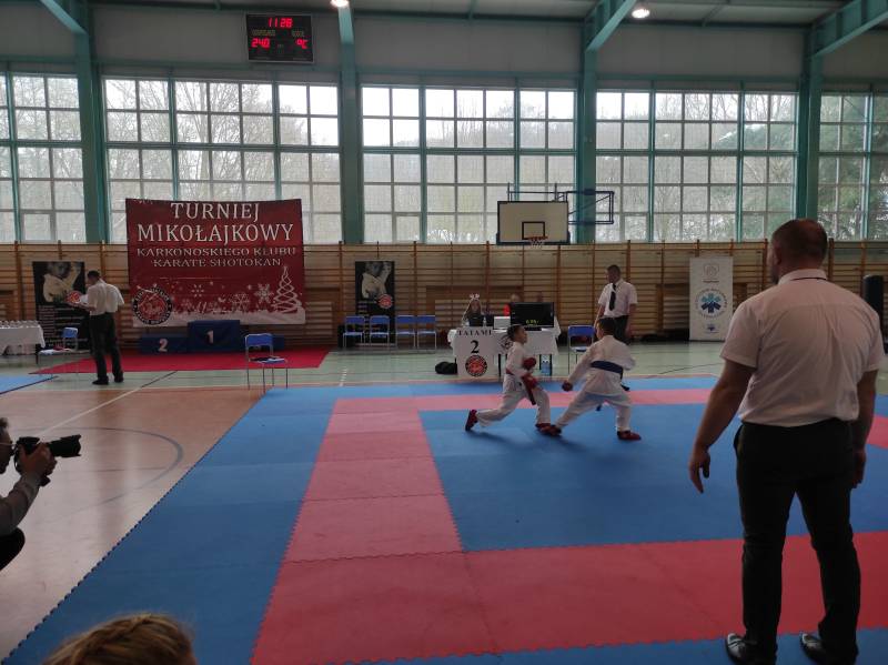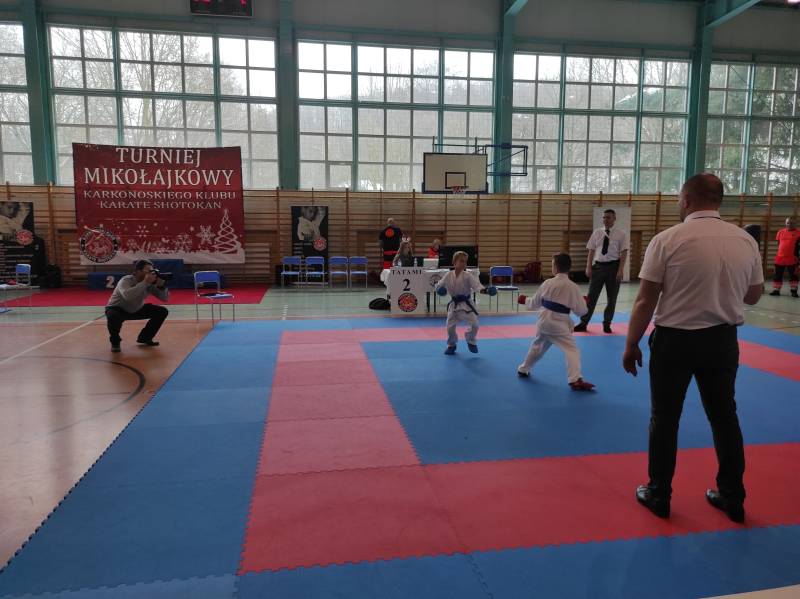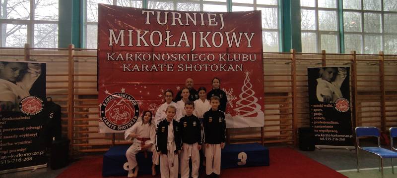 Za nami weekendowy maraton turniejów karate, bo w sobotę w Rudnej zorganizowano XIII Otwarty Mikołajkowy Turniej Karate Dzieci i Młodzieży którego współorganizatorem był klub karate Goju Ryu Shuseikan ze Ścinawy. Wystartowało blisko 200 zawodników z 13 klubów z Dolnego Śląska, Wielkopolski i jeden klub z Łotwy. W konkurencjach karate WKF nasi zawodnicy zacięcie walczyli, rywalizując w 12 finałach. Dorobek medalowy ekipy Goju Ryu Shuseikan to łącznie 23 krążki: 8 złotych, 4 srebrne i 11 brązowych, co w klasyfikacji generalnej dało 1. miejsce! Nasza drużyna równie świetnie zaprezentowała się w konkurencjach karate tradycyjnego, także nie miała sobie równych, zdobywając 58 medali: 17 złotych, 17 srebrnych, 24 brązowych. Z kolei w niedzielę w Janowicach Wielkich odbył się III Mikołajkowy Turniej KKKS. Na zawody przyjechało blisko 100 zawodników z 7 klubów z Dolnego Śląska i 1 klubu z Czech. Zawodnicy rywalizowali w konkurencjach karate WKF oraz w karate tradycyjnym. Nasi zawodnicy (5 dziewcząt i 2 chłopców) startowali tylko w konkurencjach WKF, zdobywając 9 medali: 4 złote, 3 srebrne, 2 brązowe.