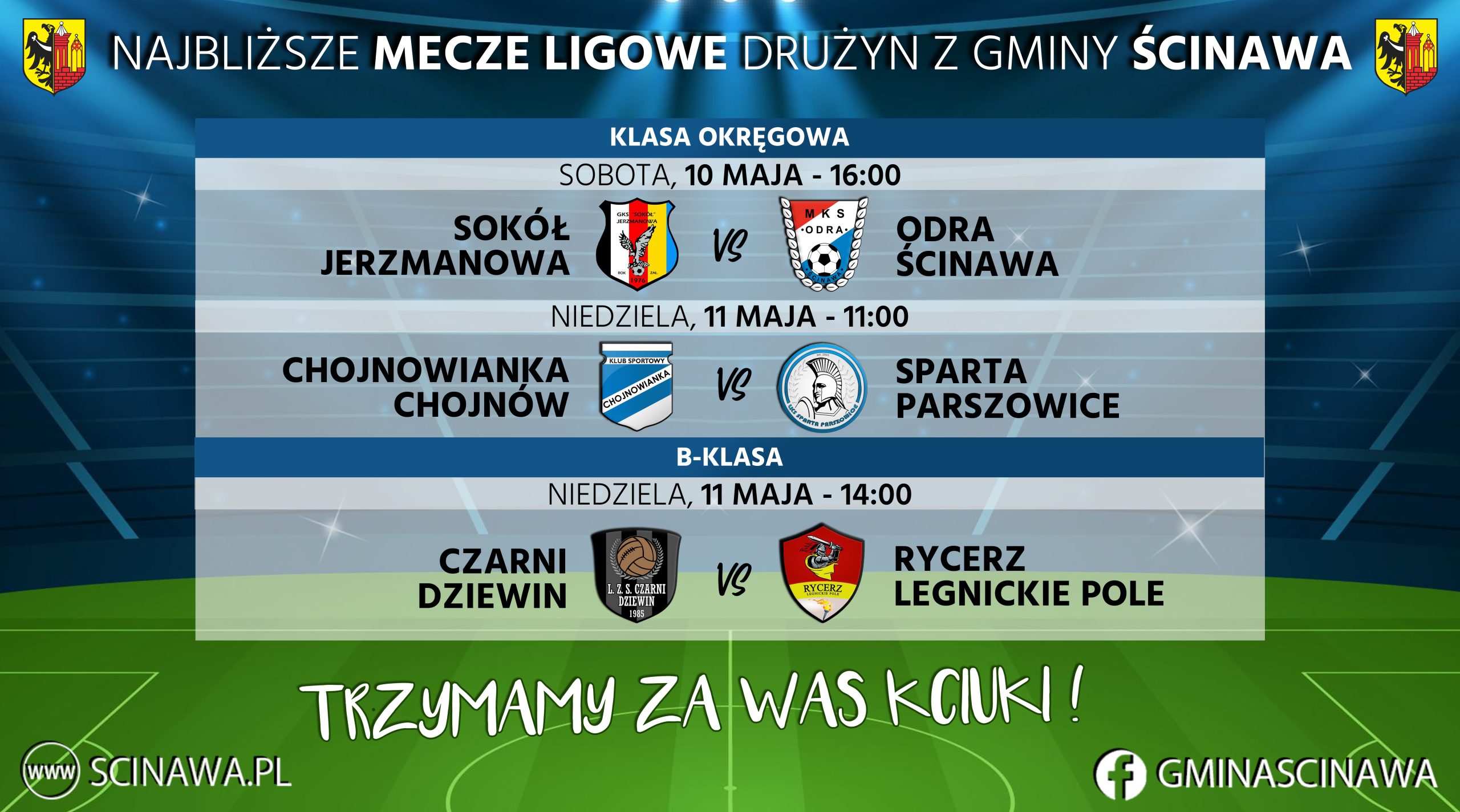 Przed nami kolejne sportowe emocje i ligowe mecze piłkarskie. Tym razem drużyny z gminy Ścinawa, uczestniczące w rozgrywkach na poziomie klasy okręgowej, zawalczą o punkty na wyjeździe. W sobotę o godz. 16:00 pierwszy zespół Odry Ścinawa zmierzy się z Sokołem w Jerzmanowej, a w niedzielę o 11:00, Sparta Parszowice zawalczy o punkty z Chojnowianką Chojnów. Również w niedzielę, tylko o godz. 14:00, na własnej murawie, B-klasowcy z Dziewina zagrają z Rycerzem Legnickie Pole.