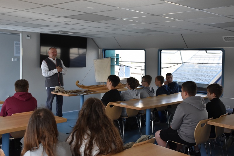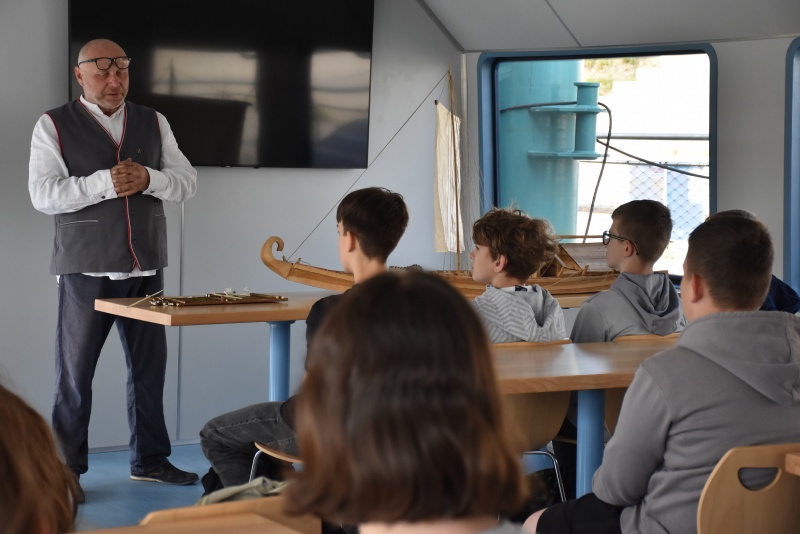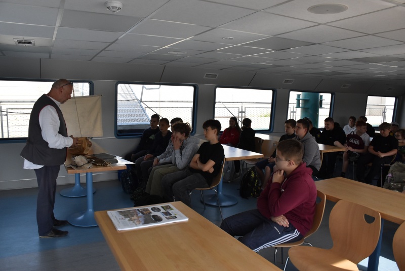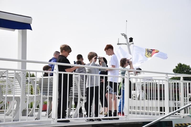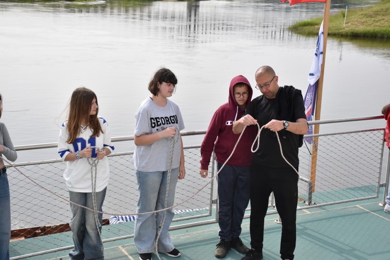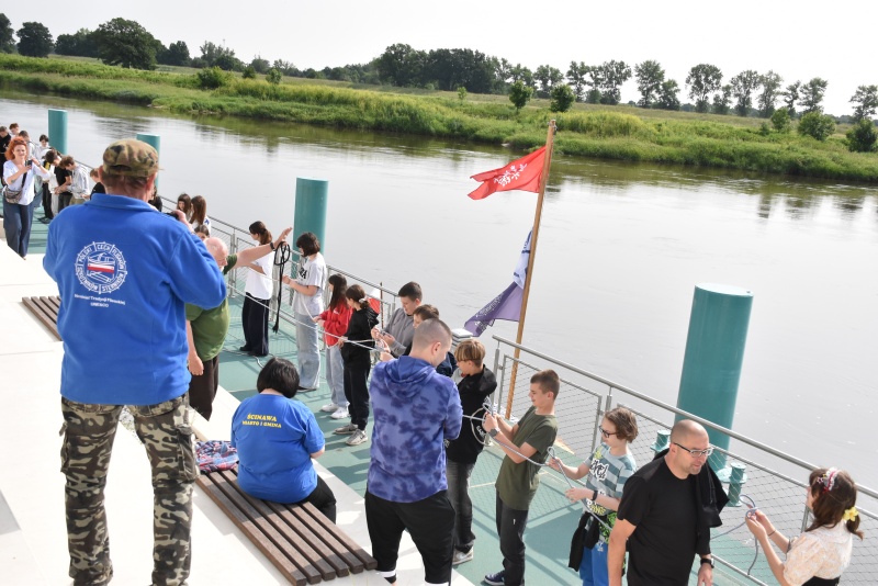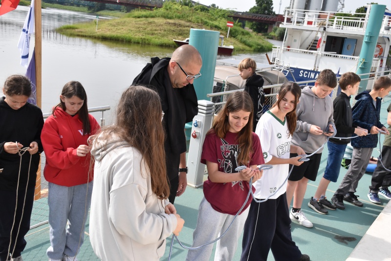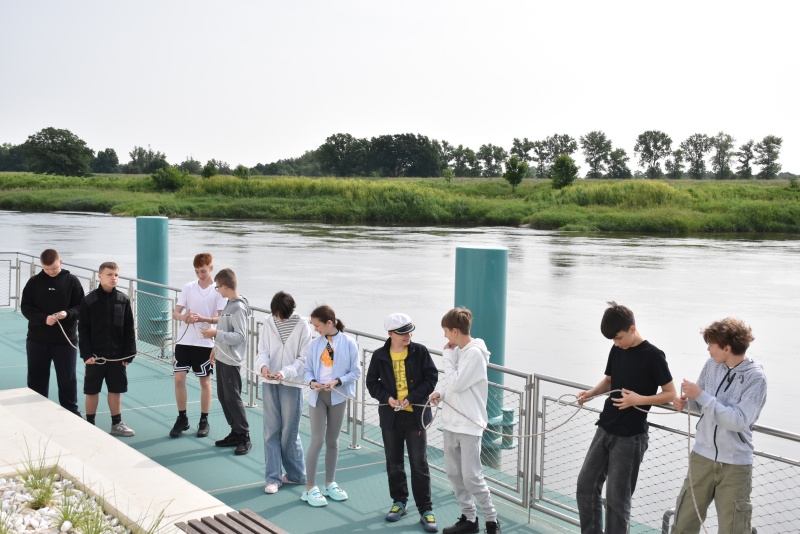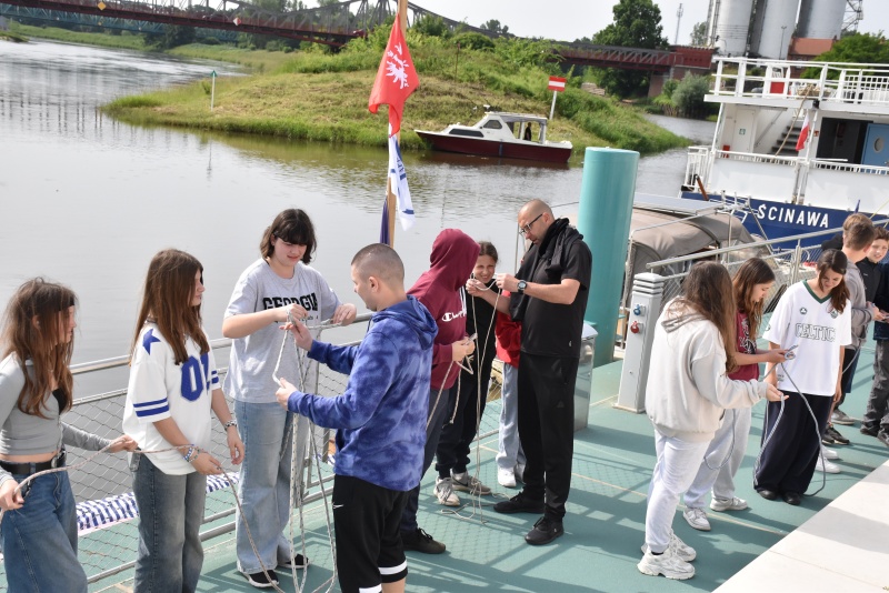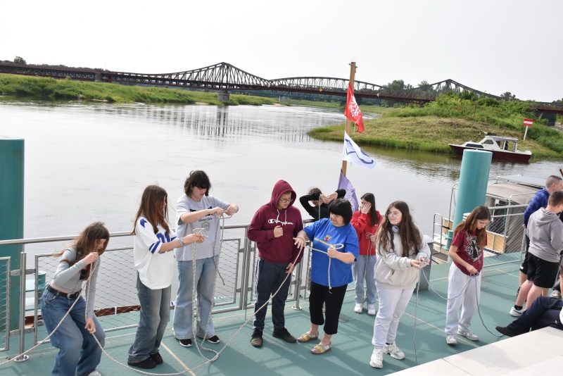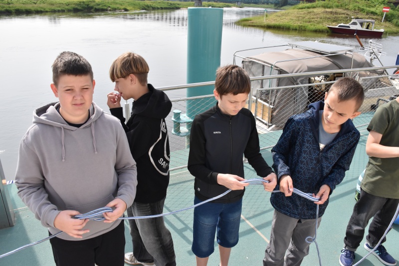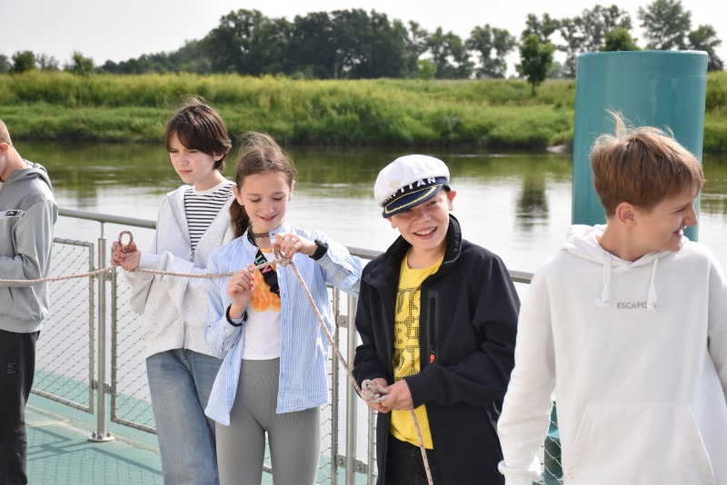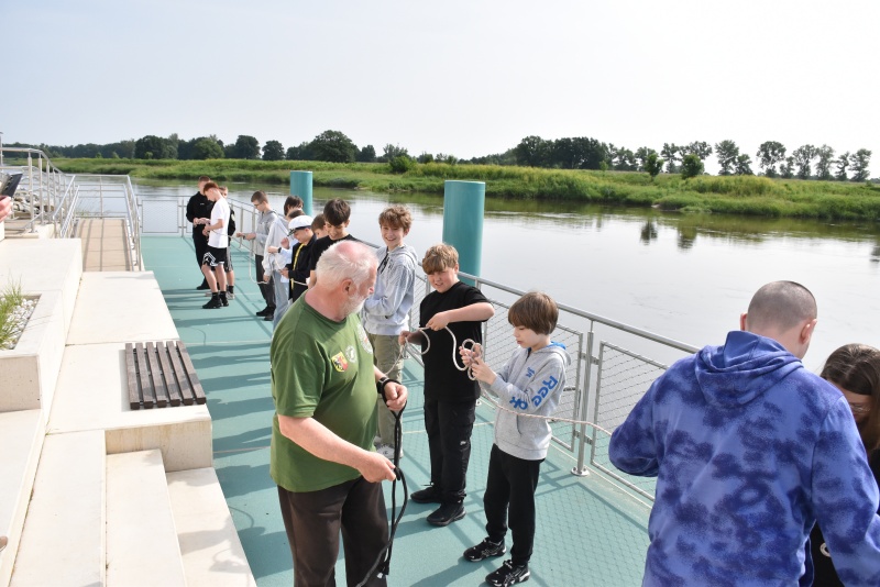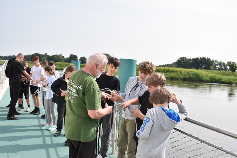 Nie zabrakło elementów praktycznych, dzieci uczyły się węzłów żeglarskich, m.in. węzła wantowego, stosowanego do mocowania drabinek linowych. Najbardziej zaangażowani uczestnicy otrzymali drobne upominki i pamiątki. Z górnego pokładu jednostki można było także podziwiać malownicze nadodrzańskie krajobrazy.