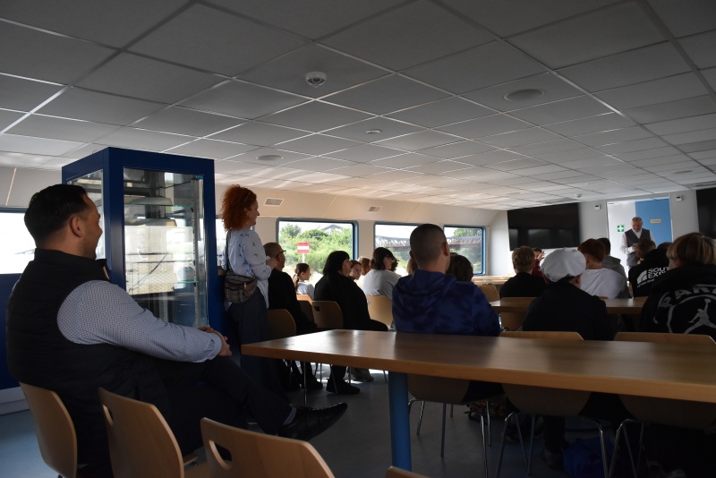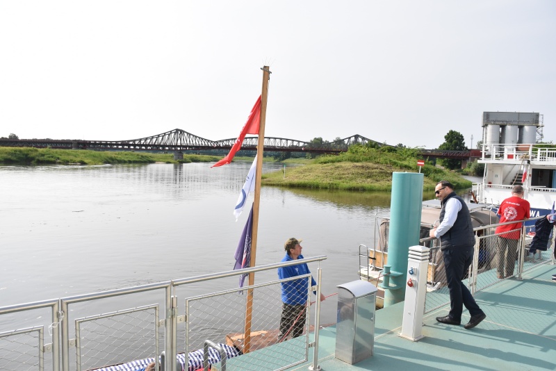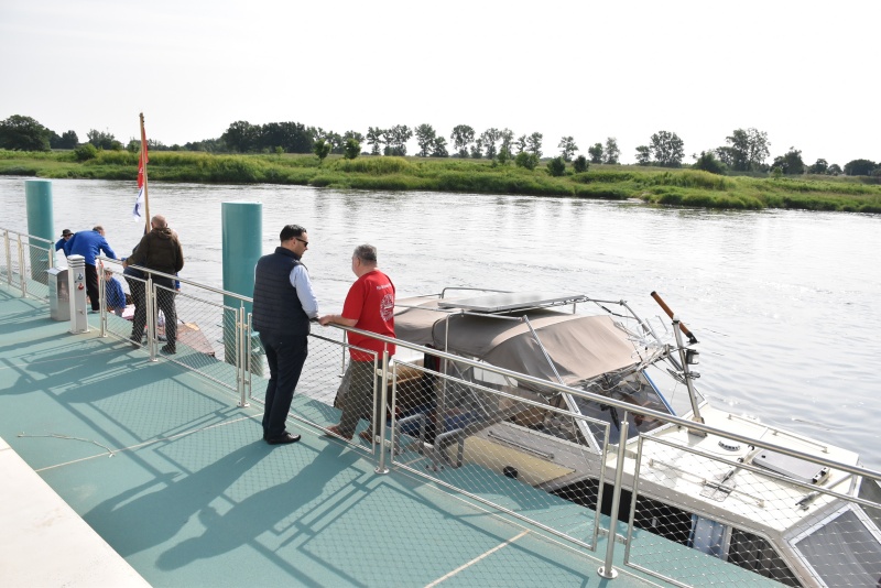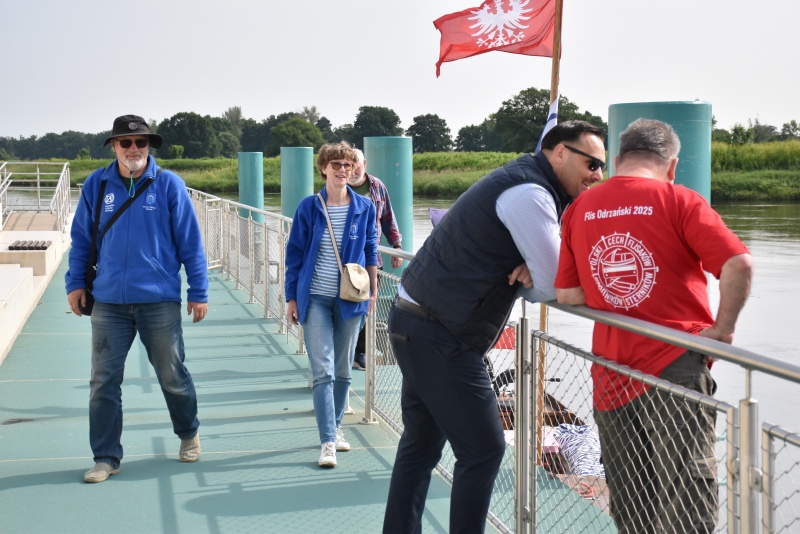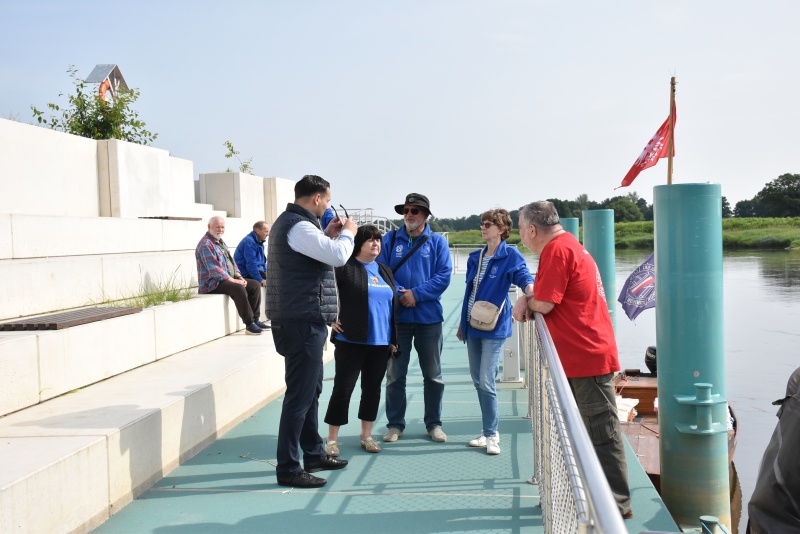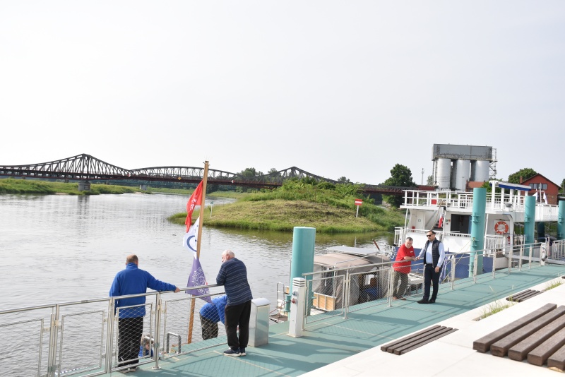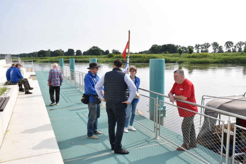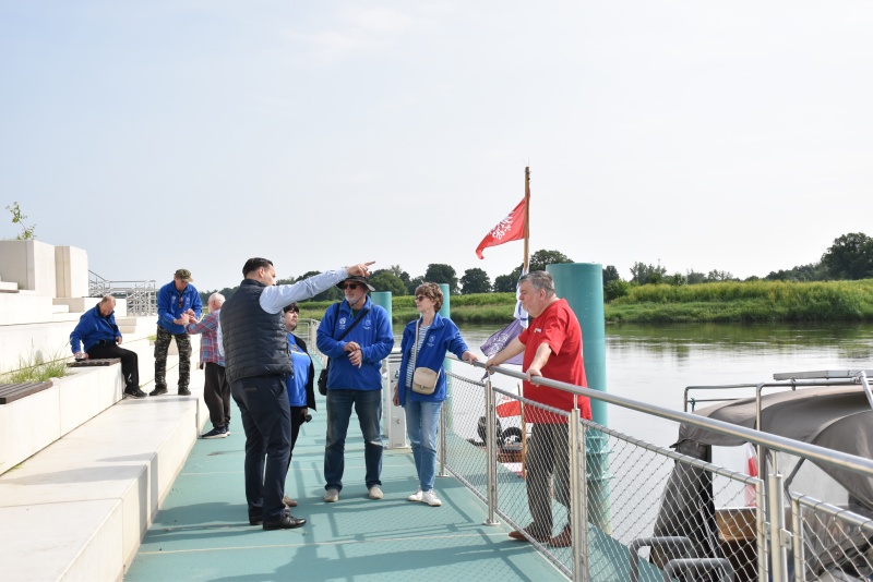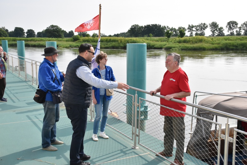 Dzień wcześniej flisacy zacumowali do Dziewina, miejscowość położonej w naszej gminie, tam zwiedzili Ekomuzeum Osady Rybackiej, gdzie mieli okazję zapoznać się z lokalnym dziedzictwem kulturowym oraz unikalną historią Krainy Łęgów Odrzańskich, przewodnikiem był radny Mariusz Mostowski.
