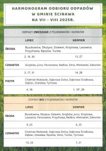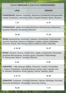 Harmonogram odbioru odpadów na lipiec oraz sierpień!