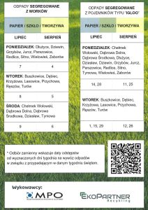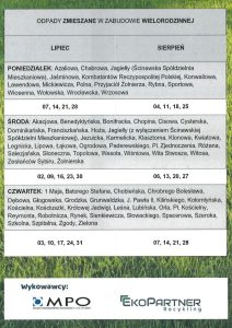 Harmonogram odbioru odpadów jest dostępny także pod linkiem: Ecopartner Recykling – harmonogram