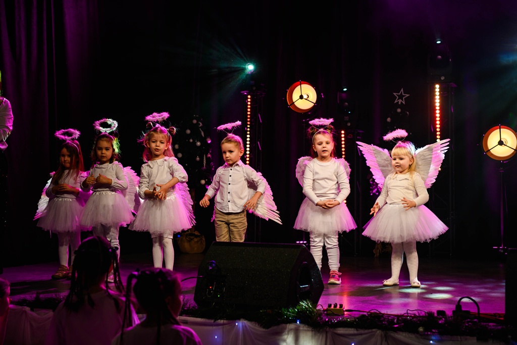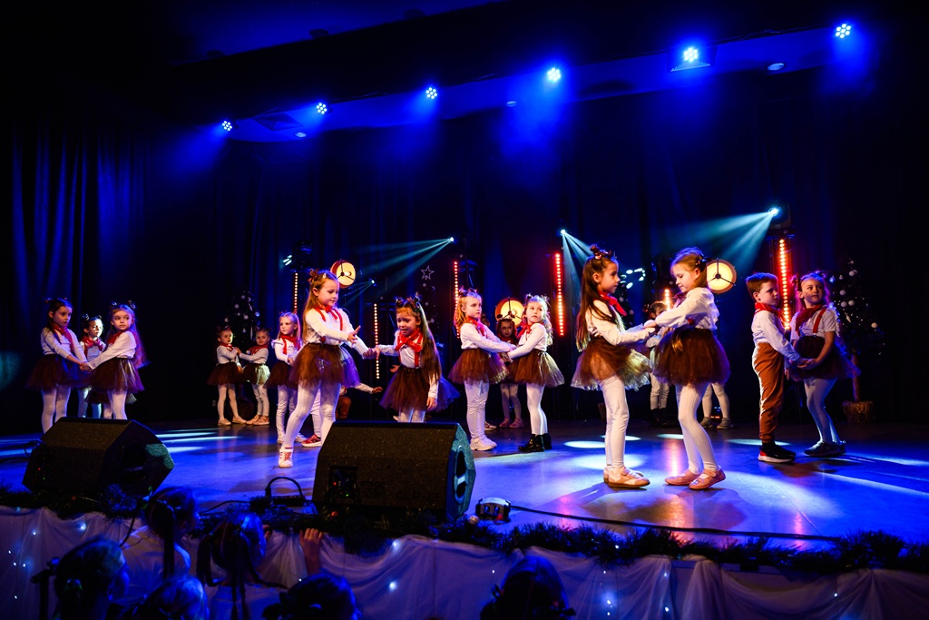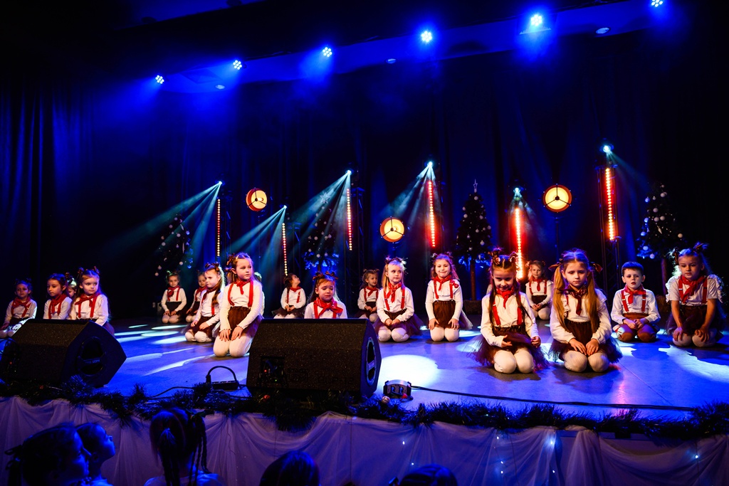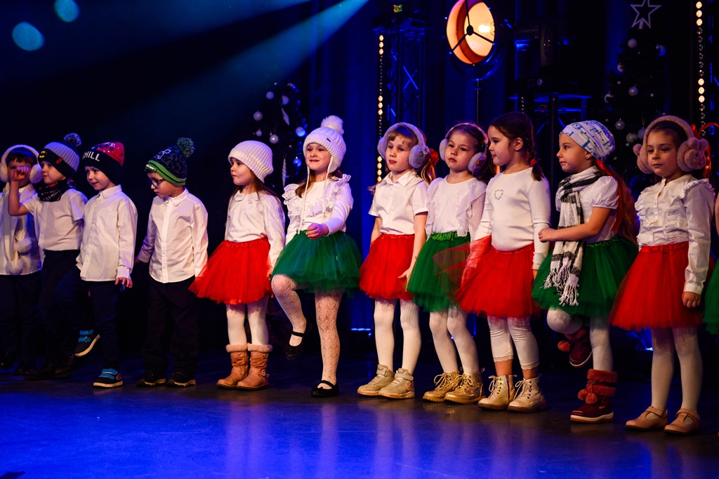 Publiczność miała okazję podziwiać występy najmłodszych artystów z przedszkolnych grup: Perełki, Jagódki i Motylki oraz energetyczne prezentacje taneczne Studia Balans. Wzruszających chwil dostarczyły również występy sekcji gitarowej Janka Samołyka i laureatów konkursu „Z kolędą Dookoła Świata”.