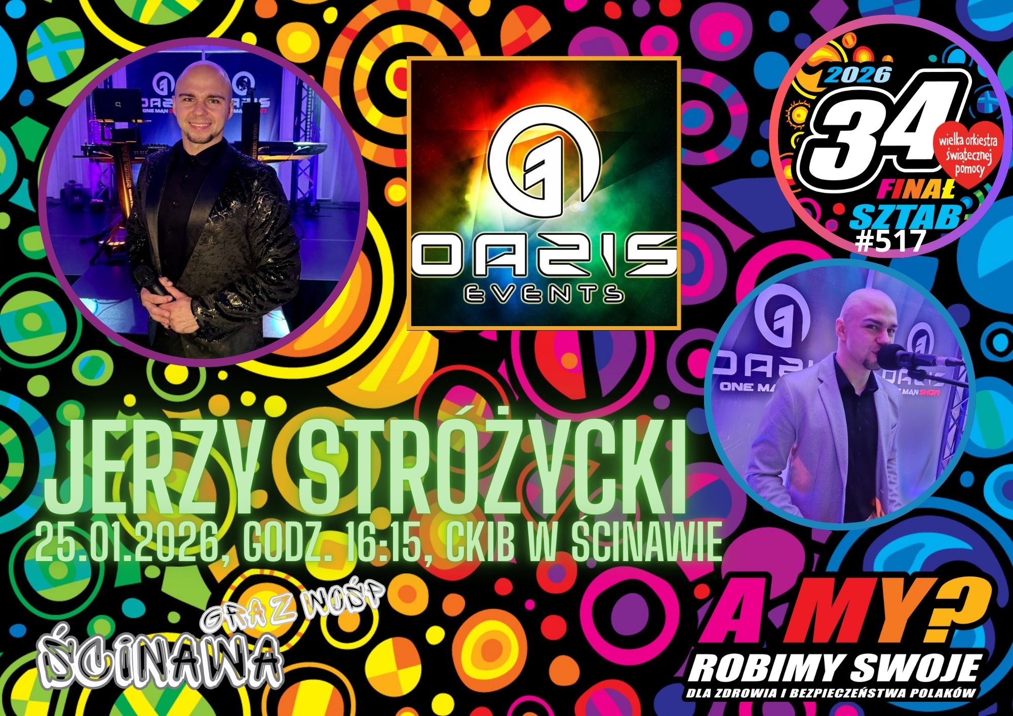 Jak co roku, serdecznie zapraszamy wszystkich mieszkańców do wspólnego świętowania i wsparcia WOŚP. W sali widowiskowej ścinawskiego centrum kultury przygotowaliśmy bogaty program pełen atrakcji dla dzieci oraz dorosłych. Na scenie wystąpią lokalni artyści, zagrają i zatańczą z potrzeby serca. Wśród nich znajdzie się m.in. OAZIS Jerzy Stróżycki, który charytatywnie zapewni również profesjonalne nagłośnienie i oświetlenie sceny. Wystąpią uczestnicy pokazów tanecznych zespołów Studio Balans oraz TRAF z Wołowa, a także podopieczni Warsztatu Terapii Zajęciowej „Uśmiech” w Ścinawie. Wyjątkową oprawę muzyczną wzbogaci utalentowana Natalia Witwicka, a gitarowe brzmienia wprowadzi Jakub Pabich, najszybszy gitarzysta z Wrocławia. Całość wydarzenia poprowadzi Tomek Pamin, właściciel szkoły Studio Balans. Nie zabraknie też wspólnego śpiewania z harcerzami, czy pokazów ratowniczych OSP.