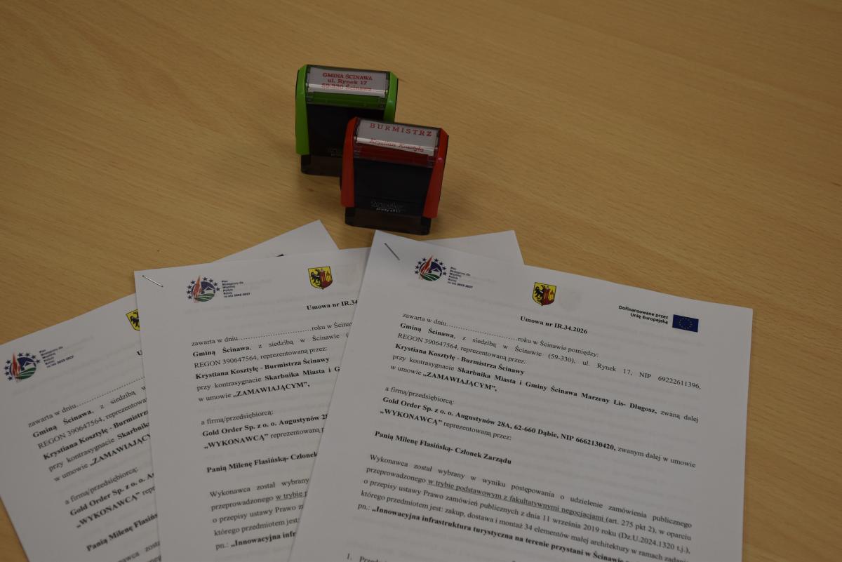 Rozpoczyna się kolejny etap wyposażania przystani i nadodrzańskiego portu w Ścinawie we wcześniej zaprojektowaną infrastrukturę. Po podpisanych jeszcze w ubiegłym roku kontraktach na sanitariaty na nabrzeżu oraz nowy plac zabaw w kształcie statku przyszedł czas na małą architekturę, m.in. leżaki oraz sznurowe hamaki. W poniedziałek, 9 marca, burmistrz Krystian Kosztyła podpisał umowę z firmą Gold Order Sp. z o.o. z Dąbia na realizację zadania pn. „Innowacyjna infrastruktura turystyczna”. Wartość zleconej przez gminę inwestycji wynosi 352.141,62 zł, jednak około 75% to pozyskane przez nasz samorząd wsparcie zewnętrzne. Termin realizacji zaplanowanych prac mija 30 maja br.