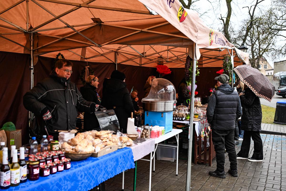 Dużym zainteresowaniem cieszył się jarmark, gdzie swoje stoiska przygotowali lokalni wystawcy, a w szczególności koła gospodyń wiejskich z naszej gminy. Na stołach nie brakowało domowych wypieków, tradycyjnych przysmaków, rękodzieła i świątecznych ozdób. Była to dobra okazja, żeby nie tylko coś kupić, ale też zamienić kilka słów i poczuć prawdziwie swojski klimat.